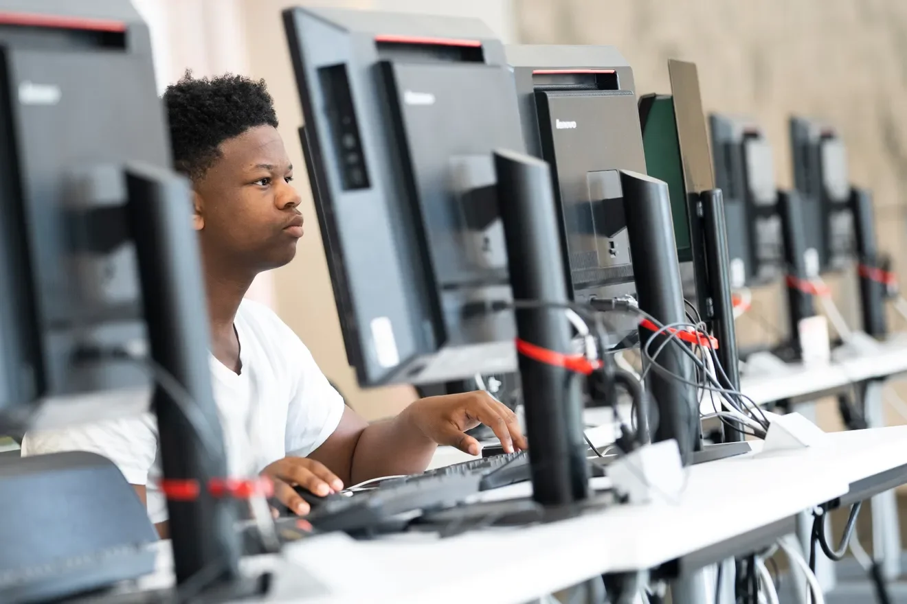 Elijah Chapman, 16, uses a computer at the Downtown branch of the Columbus Metropolitan Library. Smart Columbus has shifted its focus to creating digital equity across the area, ensuring everyone has access to high-speed internet. Brooke LaValley